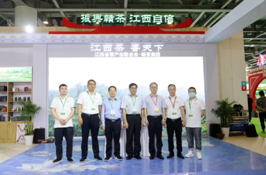 江西省茶产业联合会会长王晓鸿、秘书长陈宜等领导也莅临江西馆,与赣茶集团运营团队进行密切沟通,深入探讨赣茶集团产业布局及多领域合作等内容,并合影留念。